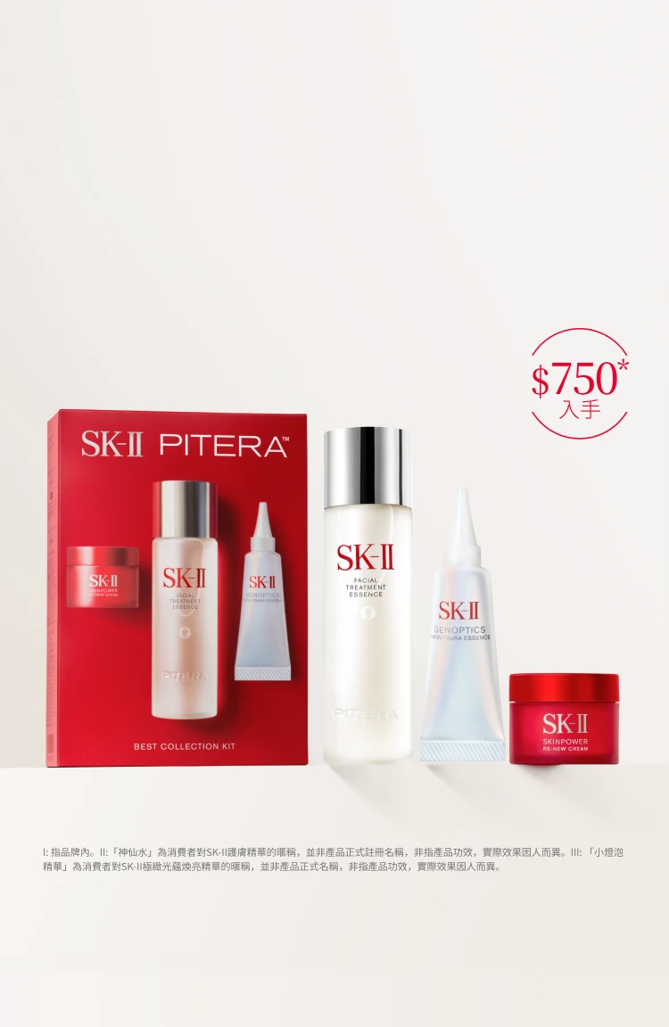 - 「神仙水」為消費者對 SK-II 護膚精華的暱稱,並非產品品正式註冊名稱,非指產品功效,實際效果因人而異。